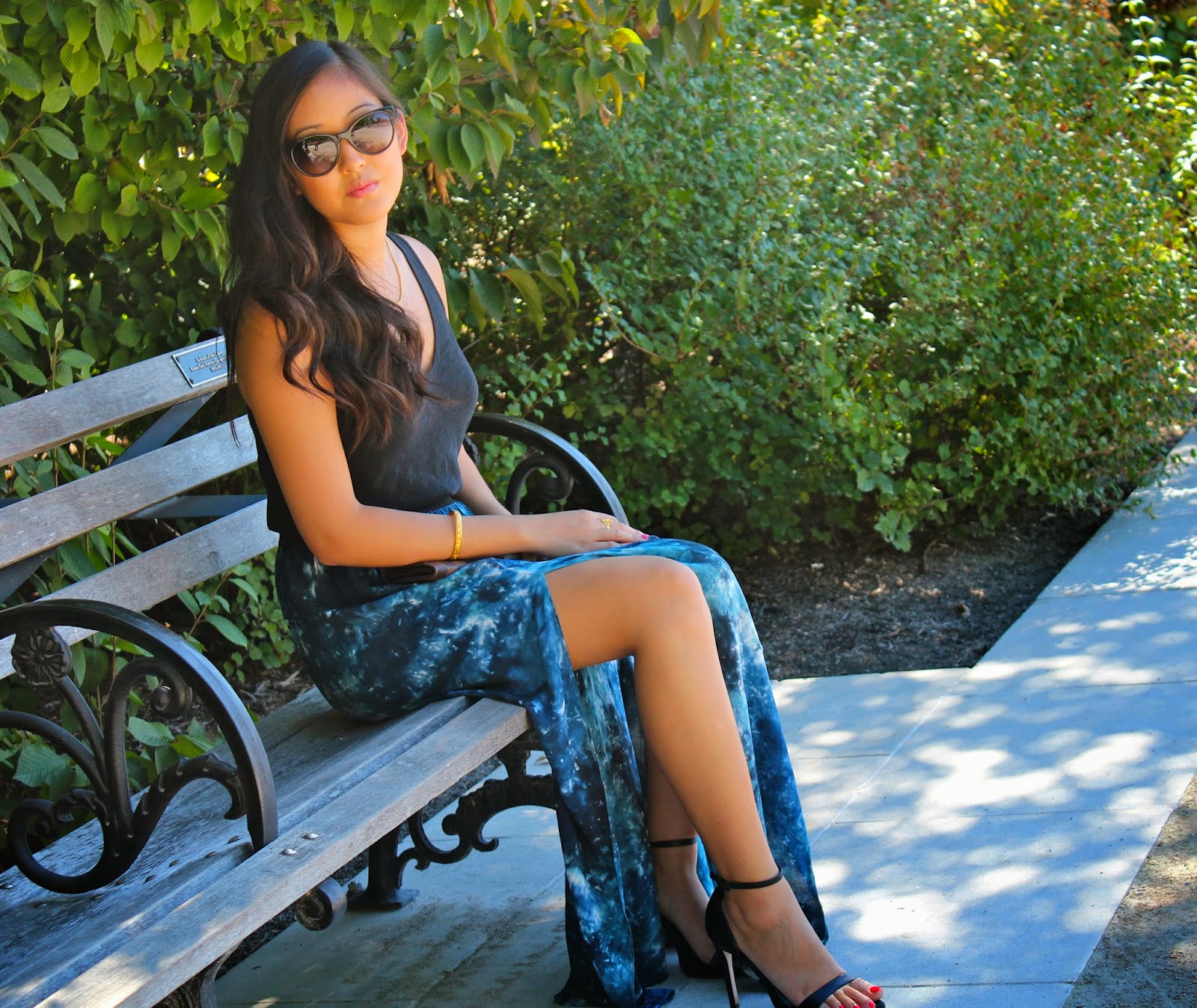 I absolutely adore maxi dresses. But what has intrigued me for quite some time now is the concept of not a single-slit maxi dress, but a double-slit maxi dress. Unlike a traditional maxi dress, a double-slit maxi adds a dramatic touch to a classic piece. The dramatic flair is most apparent in the wind when the middle panel of the skirt flows back between the legs, thereby exposing them and showing them off. I am such a huge fan of this style that I, in addition to this dress, added a double-slit maxi skirt to my closet.